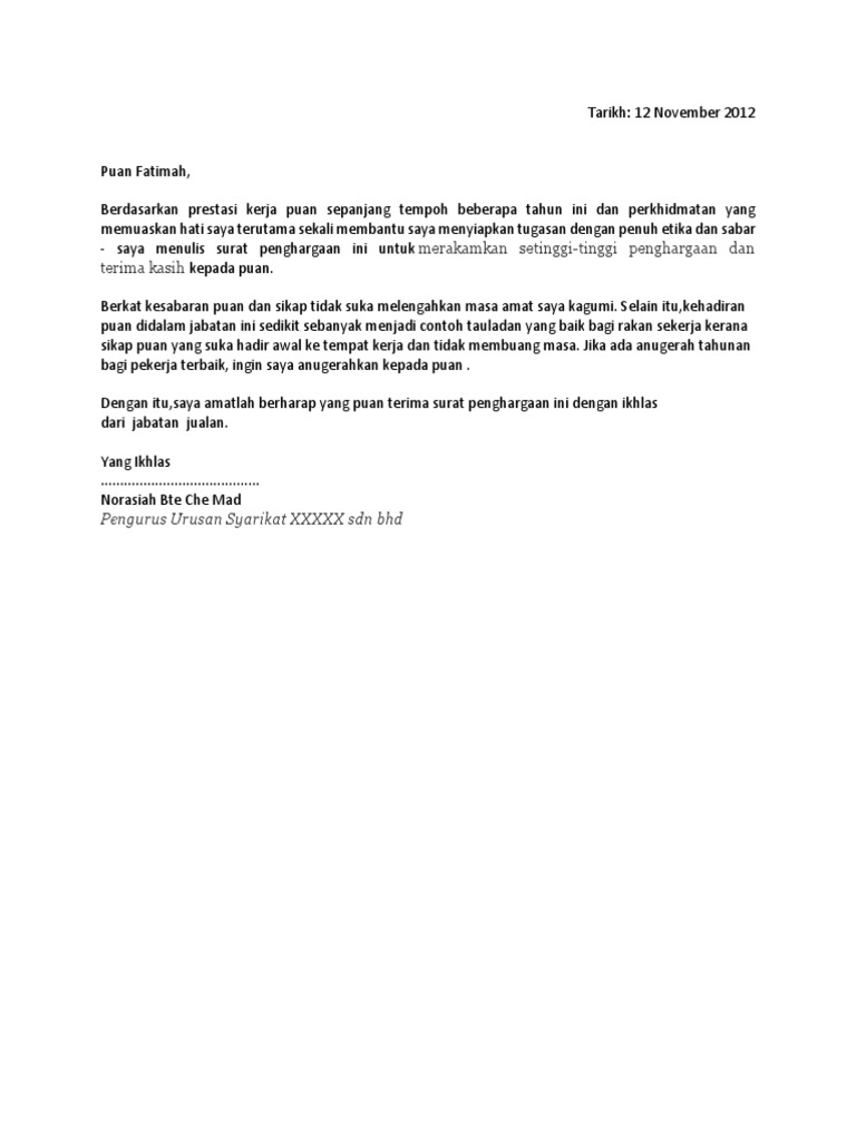 Contoh Surat Penghargaan Dan Terima Kasih Pdf
